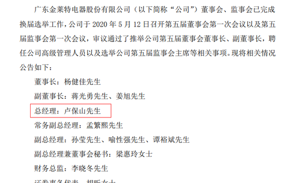 另一定增对象“志劲科技”则是由卢保山完全控股,而卢保山实为金莱特的员工,甚至在最新的管理人员换届中,卢保山成功被聘为公司总经理兼非独立董事。