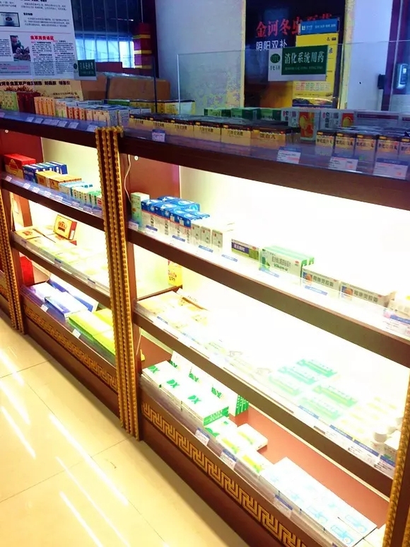冬虫夏草专柜的对面为普药销售区,主要销售妇科用药、养生保健滋补类、儿童用药、维生素矿物质用药、消化系统用药。除此之外,位于店内左边的几个药柜里也摆放着些许的普药,如感冒类、咳嗽类等日常生活常见的非处方药品类。