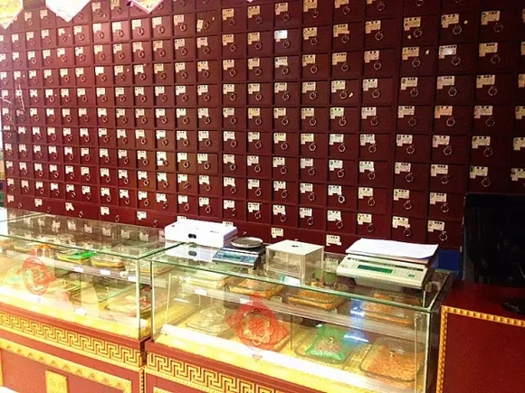 与普药专柜一墙之隔的是中药饮片区,为满足顾客的多样性需求,金诃堂增设了中药饮片的销售,周一至周六店内都会有一名执业药师负责审方抓药。同时,店内还为顾客提供免费打粉、切片服务。