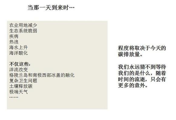 如果愿意,你可以制定很多这样的规定,比如,让大型企业为员工上下班提供班车。但人们未必会愿意就范,除非大家都明白不接受的结果会更糟。最好的例子是战争。战争时期,人们必须接受非常时期政策,起身战斗,来应对被侵略甚至被屠杀的威胁。这也说明,除非你向人们正确描绘风险,否则很难大规模地触发人们一致节能的行动。