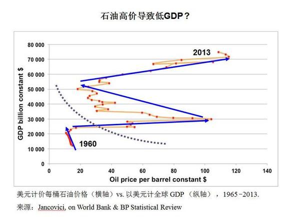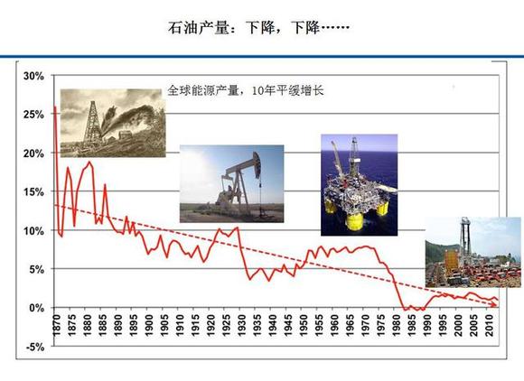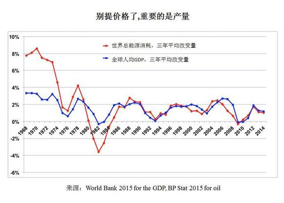 看看长期数据,你就会意识到石油价格根本是无弹性的。用美元来计算长期价格,你会得到惊人的结论:石油产量和价格在长期内毫无关联。如果石油供应突然减少10亿桶,第二天的国际原油价格会出现大涨,但不会持续太久,因为产量减少对GDP造成影响,最终价格会回落并向下走。以往原油市场上曾出现过多次供给减少和价格下跌并存的局面。