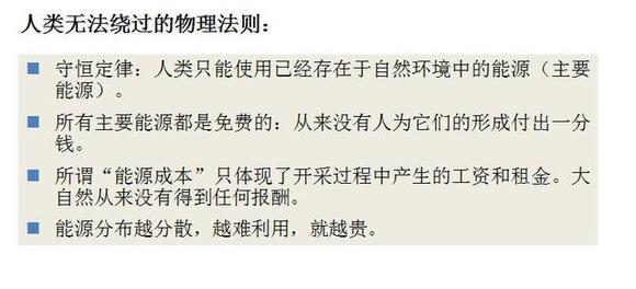 我不看好是因为自然规律。可再生能源并不是新事物。人类很久以前就开始使用太阳能来晒干东西,利用风来驱动船只和风车,用生物质(尤其是木头)来烹调和取暖,直到发现了化石能源。我们决定用后者来取代这些可再生能源,为什么?因为从物理学角度看,这些化石燃料使用、运输和贮存起来非常方便高效,特别是石油,能量密集,可以轻松从自然界中开采出来,开采成本接近于零。你不可能凭空制造出能源,而只能利用环境中现有的。化石能源的形成经过了漫长复杂的自然过程,开采、储存和使用极其方便。间歇性能源可不是,人们今天热衷的风能和太阳能,都需要建造大型设施来收集和贮存。一个很简单的笑话说:你不会只在有太阳的时候需要电灯吧。