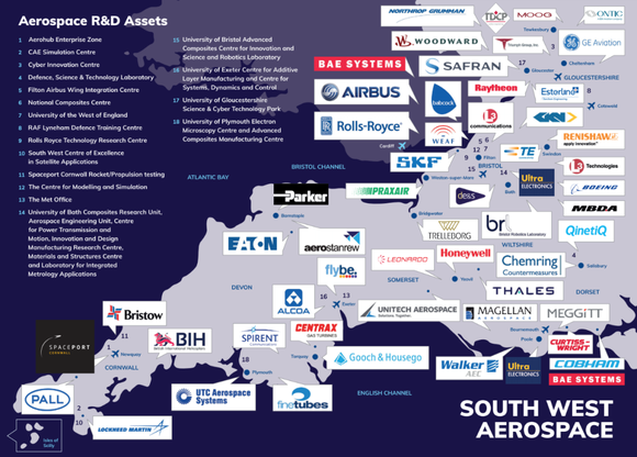 英国西南地区航空产业分布图;信息来源:South West Aerospace