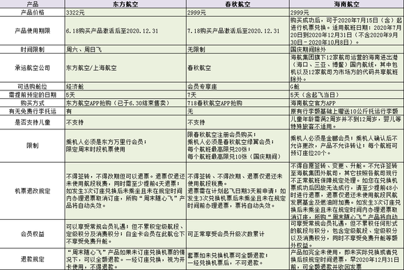 废话不多说,直接将市面上的几款“随心飞”产品对比做成表格形式展现出来。