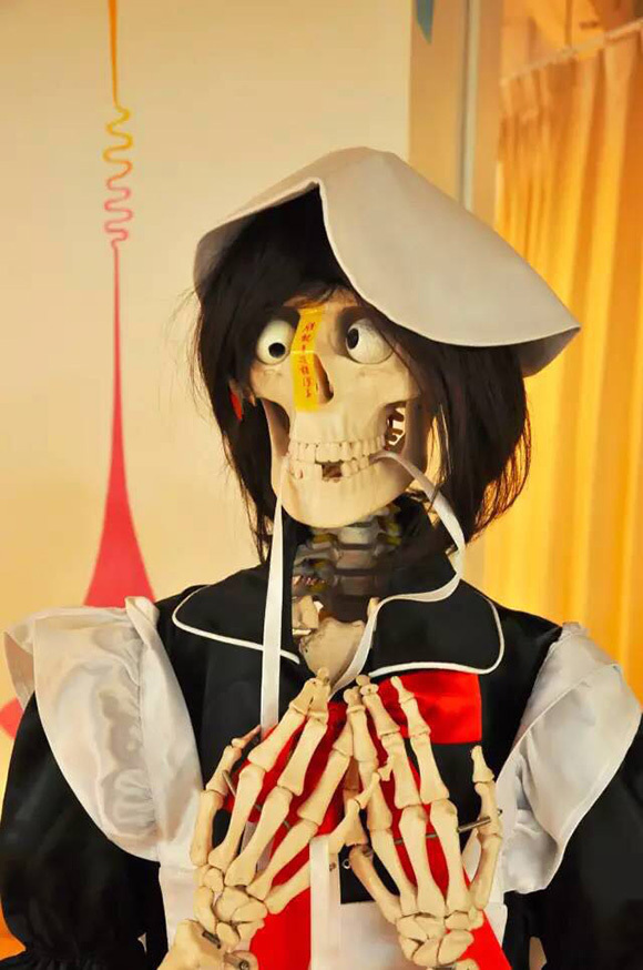 这位是穿着女仆装的“骨哥”,鼻子上的黄色封条是什么鬼?