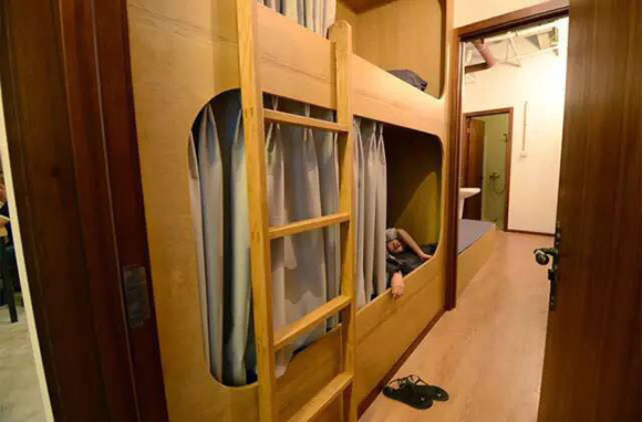 同样是休息室,我们只能坐着,斜靠着,人家是有密闭空间还能躺着的。