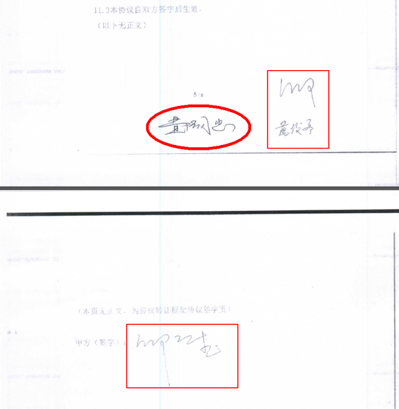 有事钟无艳,无事夏迎春。找到仰智慧这棵大树之后的12月7日,黄国忠和六合逢春转脸就撤销了对徐永峰、林岳辉的全部授权,二者重新拿回对山水文化的实际控制权。令人费解的是,黄国忠、六合逢春和仰智慧签署并转发给山水文化的《协议》,仅是一份缺少部分签章签印的模糊扫描件,扫描件中各方的签字颜色深浅也并不一样,该扫描件一经公布便引发热议与质疑。