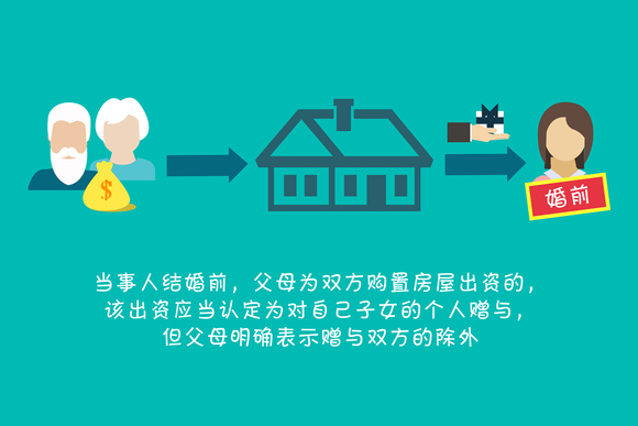 依据为我国《婚姻法司法解释二》第二十二条第一款规定当事人结婚前,父母为双方购置房屋出资的,该出资应当认定为对自己子女的个人赠与,但父母明确表示赠与双方的除外。