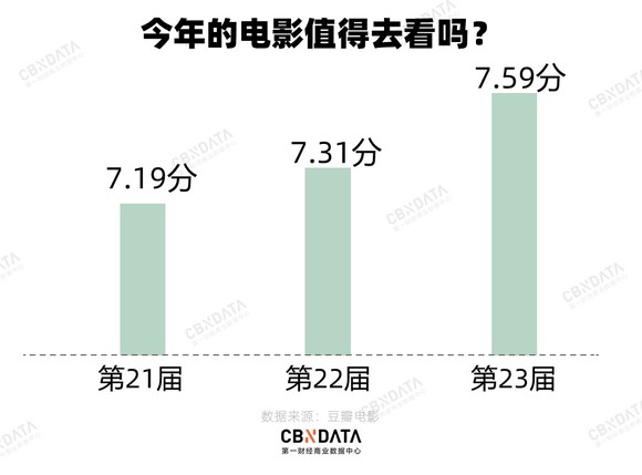 剔除掉尚未上映和尚未有评分的电影,本届上影节的展映影片均分是三年来最高,为7.59分,但也相差不大。