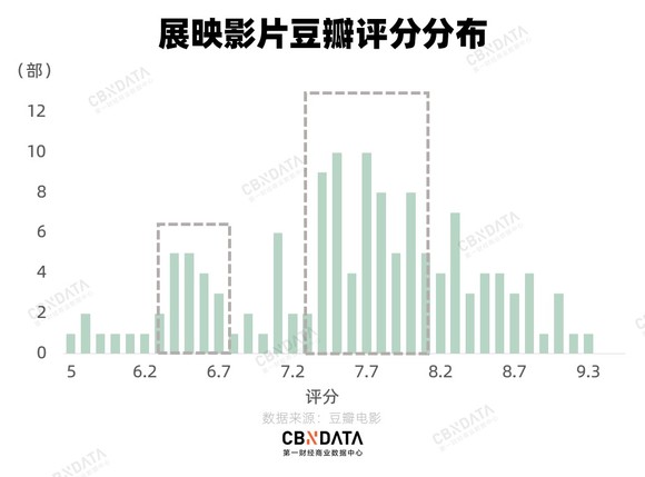 总体来看,6.2-6.7以及7.2-8.2分两个评分区间的电影最多。今年的展映影片总体质量优秀,值得一看。