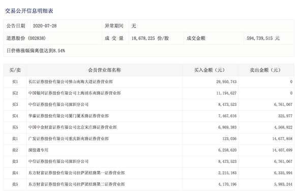 道恩股份7月28日日价格涨幅偏离值达到8.54%,成交金额5.95亿元,深股通专用席位卖出1440.77万元。