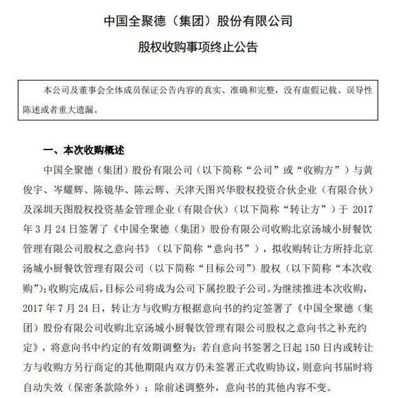 外卖业务铩羽而归后,全聚德又动起了收购主打粤菜的休闲餐饮品牌"汤城小厨"的算盘,但五个月后,这笔收购也宣告终止。