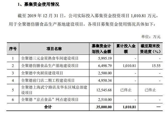 面对现金流的巨大压力,全聚德给出的方案是,终止2014年募集资金的项目,并用剩余资金永久补充流动资金。值得一提的是,当初募集的3.38亿资金仅投入了1010.81万,用于六个项目其中一个的建设,至今进度为15.55%。而其他的募资全都在银行账户里"躺着吃利息"。