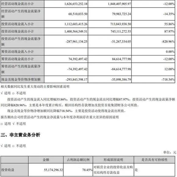 报告期内公司通过投资得到的收益逾5500万,占利润总额比例超78%,远多于主营业务。