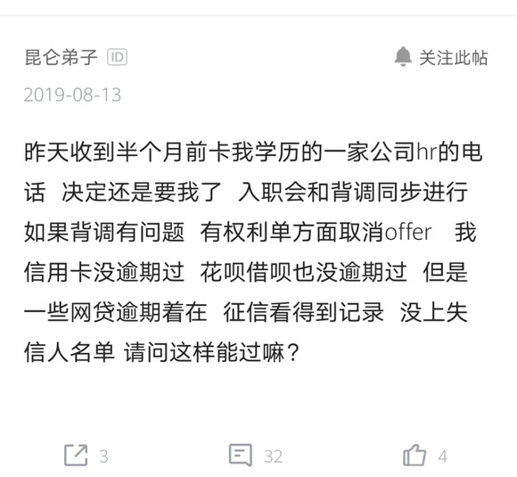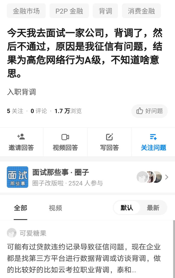 2019年时候,曾有求职者在脉脉上发布过这样一条疑问,征信报告会是背调的一部分么?
