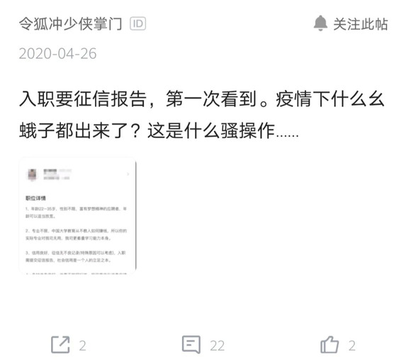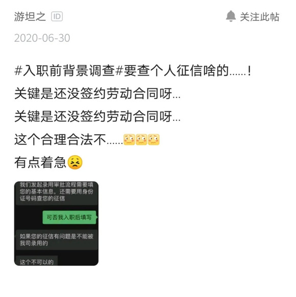 有的公司入职要求提供无犯罪记录以及征信报告,这引起了网友的广泛讨论。