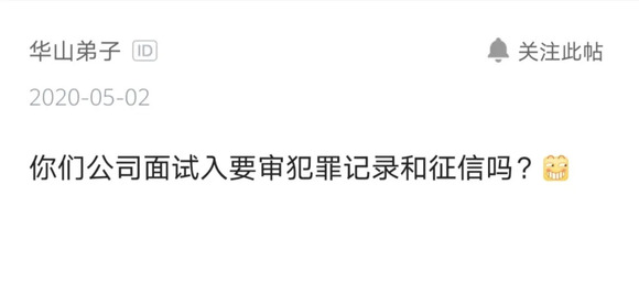 但楼主后面给出的一条回复却明确表示,该公司背调查明确需要提供征信报告。