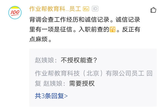 不少求职者回复称,背调内容多是与工作履历相关,大多数不查征信。