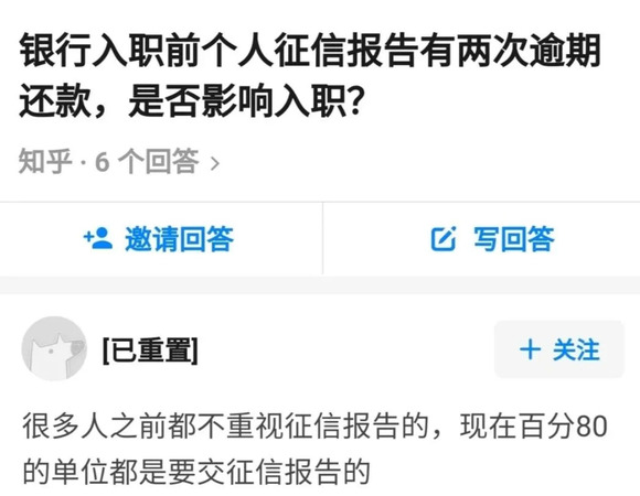 网友在知乎上发问个人征信报告逾期是否会影响入职。其中一个回答表示,80%的单位都要交征信报告。数字未必准确,但是背调征信报告正在成为各大企业的发展趋势。