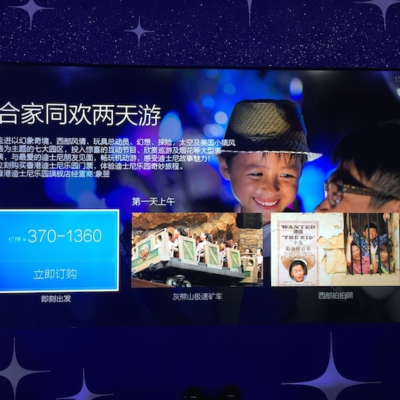 当然,更多的节目除了能够进一步与年轻消费者们建立联系之外还有助于衍生产品的销售。迪士尼和阿里巴巴也想到了更直接的方式,通过简单的遥控器操作,你就可以在电视机前选择商品,产品涵盖了迪士尼、皮克斯、漫威以及星球大战的众多产品,包括儿童服饰、文具用品、家居床具,甚至包括香港迪士尼乐园的度假产品——从门票到酒店预定,而明年开幕的上海迪士尼乐园在其中也有展示。