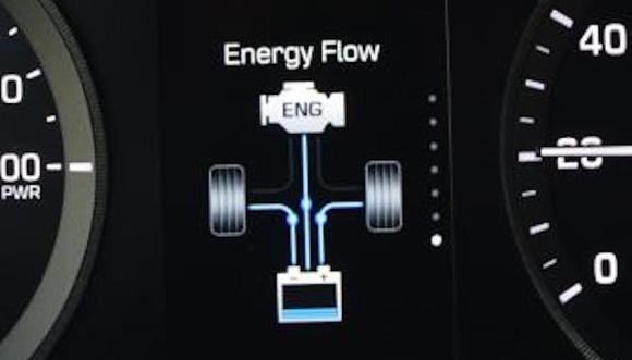 现代索纳塔插电式混动车型显示出能量从轮毂流入或者流出。