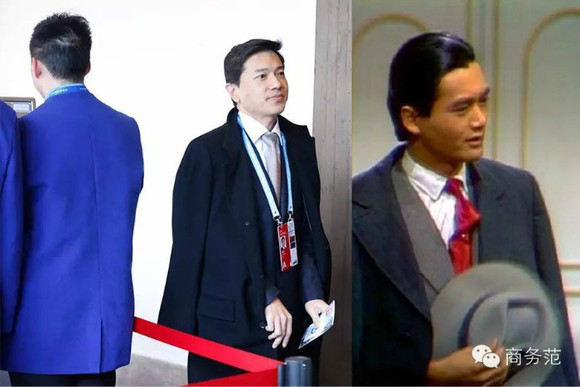 曹国伟的西装穿的有模有样,领带颜色也选得不错。拿出了一些大佬气派,其他都不错,只可惜袖子长了一丢丢。