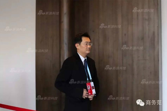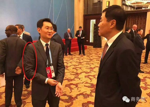小马哥站与马云隔一个老外,也是正中间习大大身后不远处的位置。