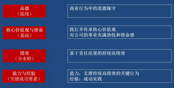 第三是牵引发展。干部标准牵引干部理解和践行公司的要求与期望,促进干部队伍持续发展,以匹配业务战略的需求。