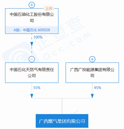 企查查数据显示,广西燃气集团有限公司隶属于燃气生产和供应行业,注册资本1亿人民币,其中,中国石化天然气有限责任公司出资55%,是公司控股股东。