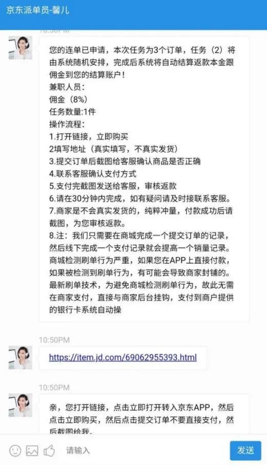 无独有偶,8月3日凌晨,张强也接触到了以京东派单员为名的组织,做起了刷单的兼职。