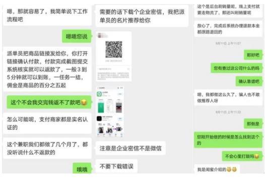 8月7日,王鹏(化名)在上班期间看到有人在微信群中发了兼职信息,便私下添加了对方微信咨询详细情况。
