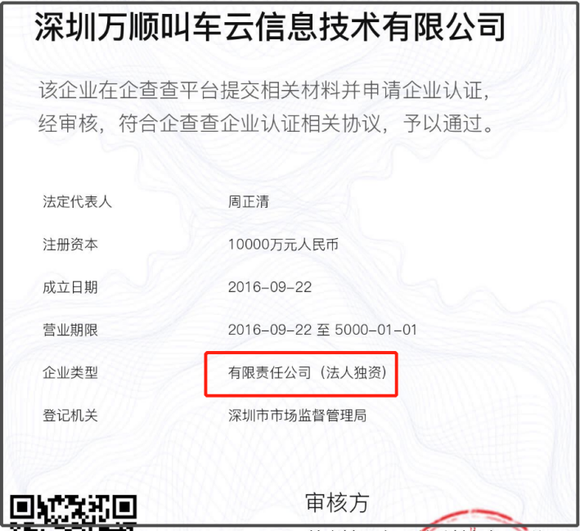 资料显示,深圳万顺叫车云信息技术有限公司是一家法人独资的有限责任公司。