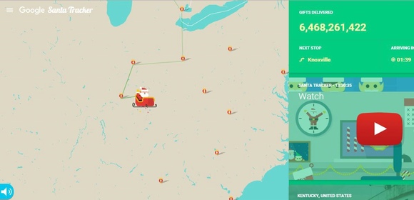 甚至像谷歌和微软这样的科技巨头也加入到行动中来了。他们根据NORAD的数据煞有介事地制作了地图,孩子们可以在上面查看圣诞老人飞到哪儿了。数据会一直更新到圣诞节当天早晨。