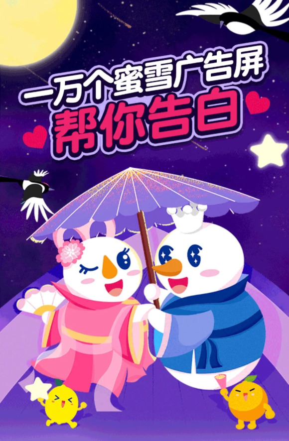 刚刚破万店的蜜雪冰城,发起了一场“一万个蜜雪广告屏帮你告白”的主题活动。
