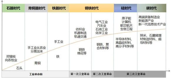 1.新材料发展历程:目前处于第三次工业革命的硅、碳时代