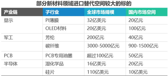 新材料等关键领域的突破将成为技术竞争的胜负手。作为多个产业链的上游环节,新材料产业的发展受到下游应用场景的极大制约,研发成果难以快速投入大规模使用等特点,同互联网等高速迭代的行业相比显得市场节奏较为缓慢。但缓慢的背后也积聚着巨大的能量,一旦释放将会导致市场格局的嬗变。