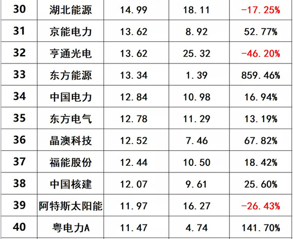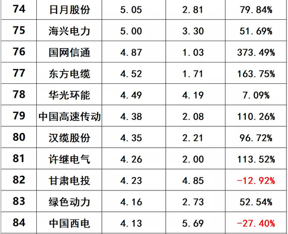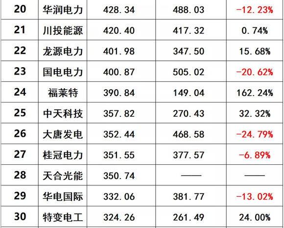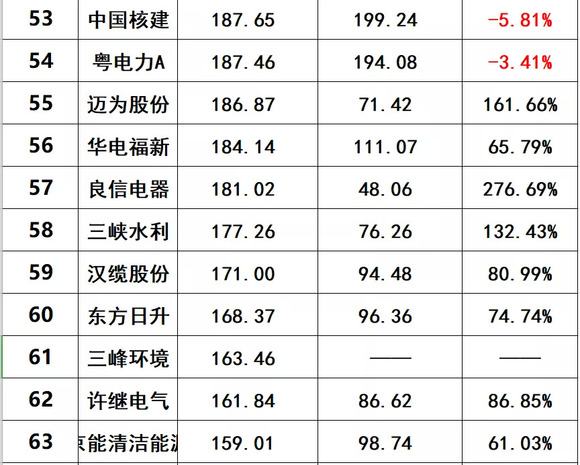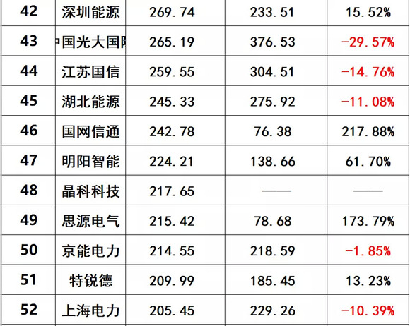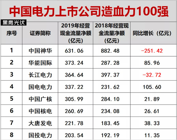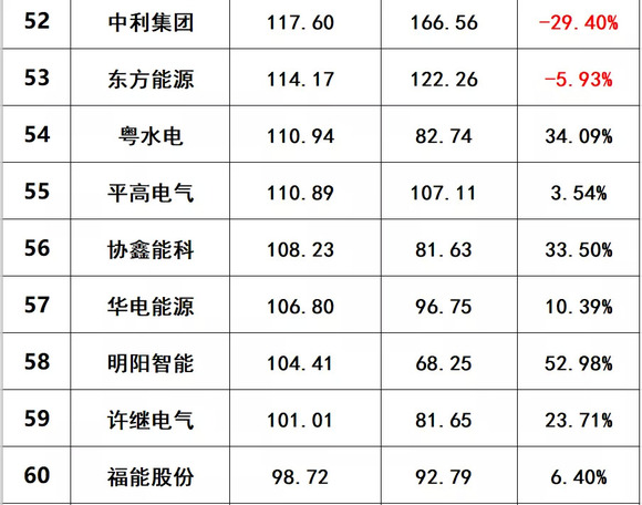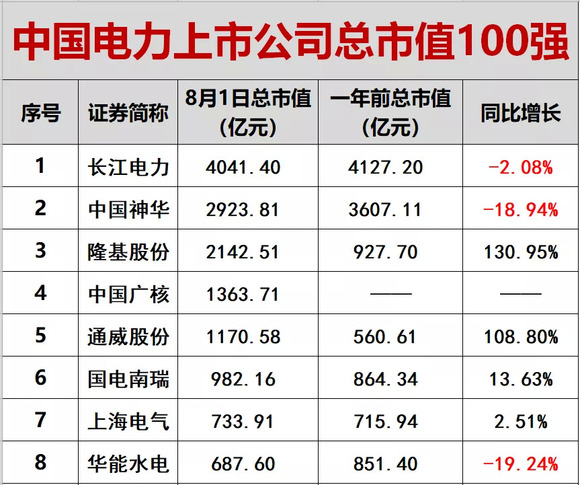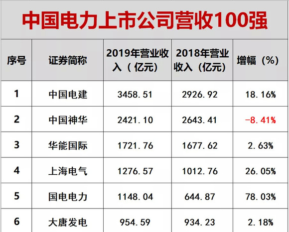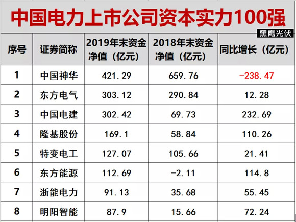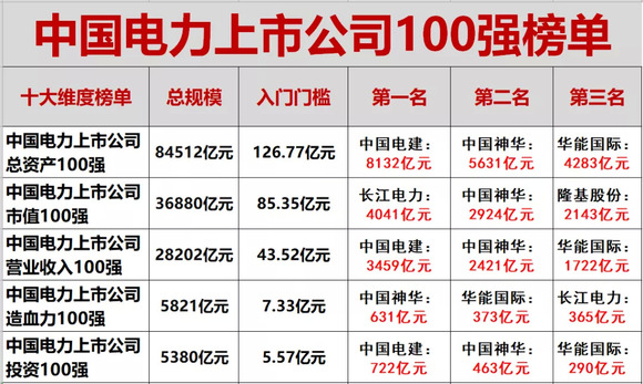 黑鹰光伏团队特此制作“中国电力上市公司100强”榜单。