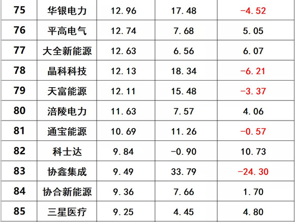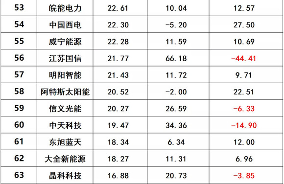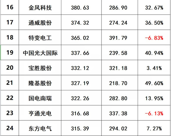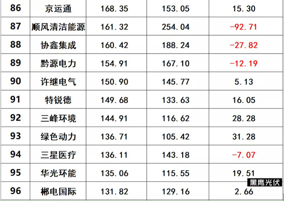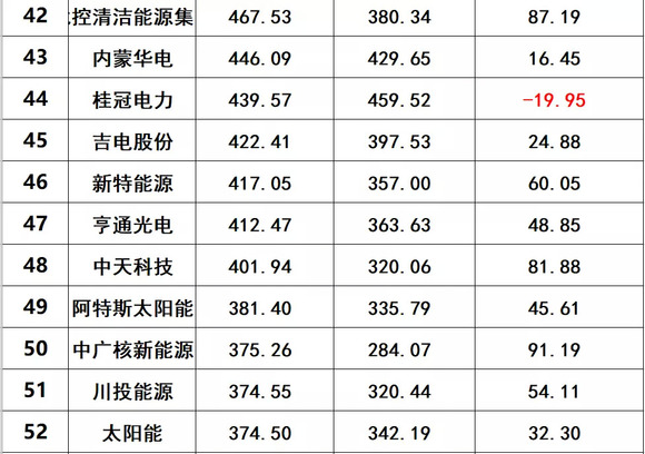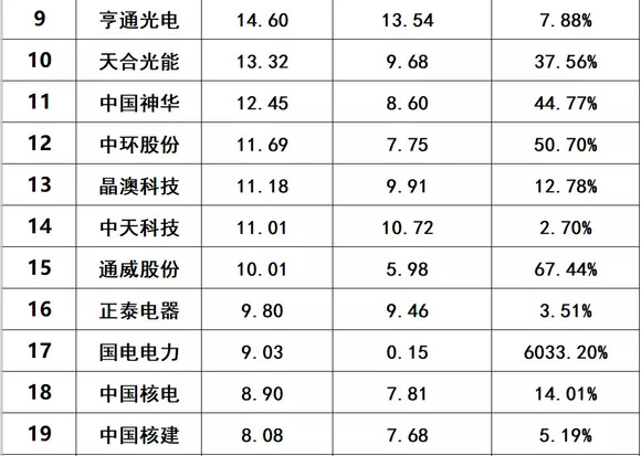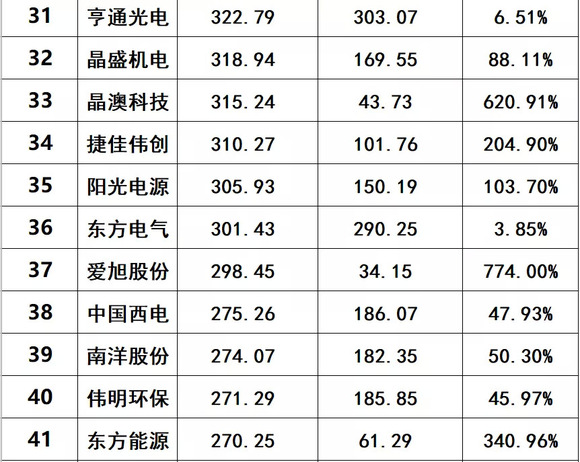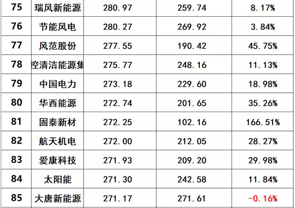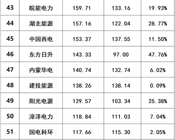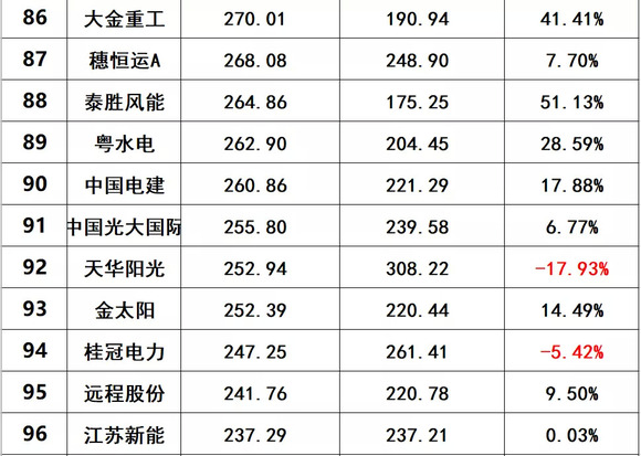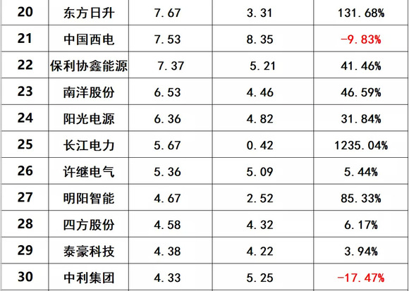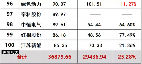 黑鹰光伏统计数据发现,电力100强企业大多仍保持快速成长的趋势。比如:
