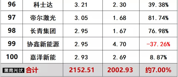 据黑鹰光伏统计,100强榜单中72家企业净利润实现正增长,59家企业增幅在10%以上,14家企业增长在100以上;而28家盈利下降的企业中19家降幅在10%以上。