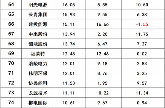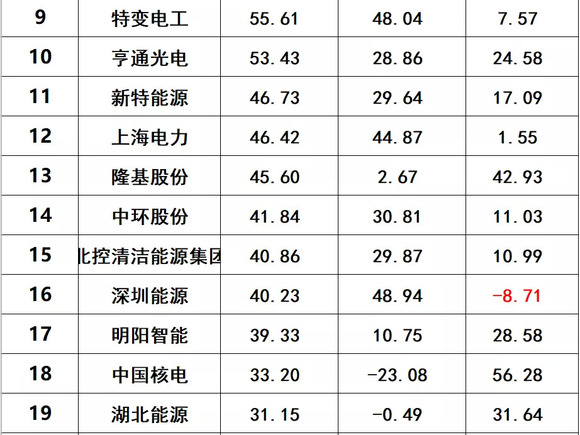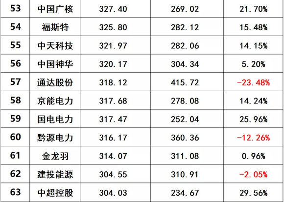 该榜单筛选标的涵盖在A股、港股、美股等地上市的340余家中国电力上市公司,主营业务涉及火电、水电、核电、光伏、风电、生物质发电等电站投资运营商及上游核心部件制造商。