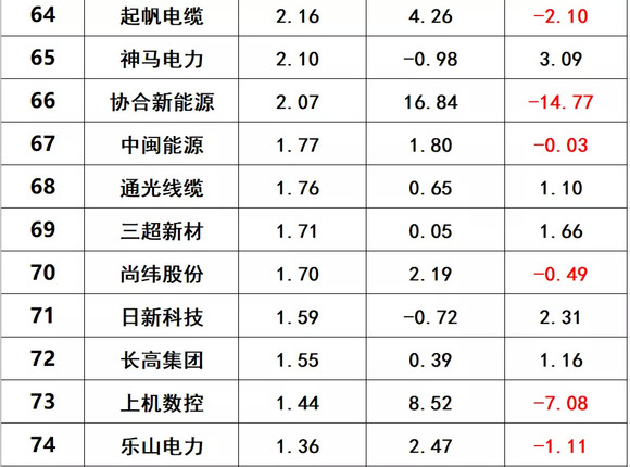 其中资金净值在10亿元以上的企业仅为31家,在100亿元以上的企业仅有6家,分别为中国神华(421.29亿元)、东方电气(303.12亿元)、中国电建(302.42亿元)、隆基股份(169.10亿元)、特变电工(127.07亿元)、东方能源(112.69亿元)。