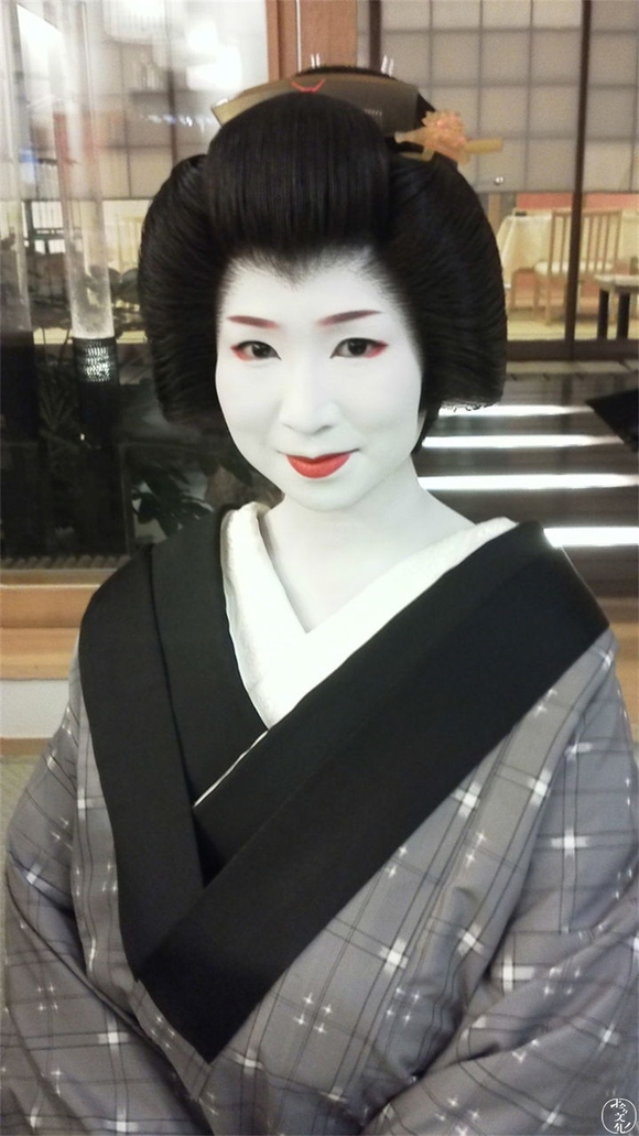 艺妓脸部之所以涂得非常白,是因为过去没有电灯,都是蜡烛,只有涂成那样才能使人看上去更漂亮。至于艺妓的手没有涂白,则是为了显示艺妓的清洁,好在提供餐饮服务时让客人放心。