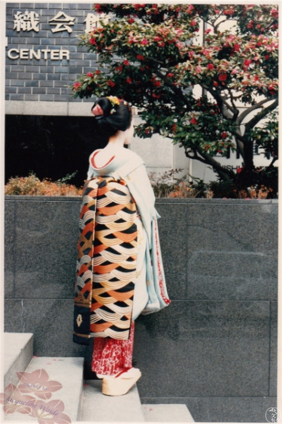 尽管艺妓的服装被归类为和服,但事实上却与传统的和服有一定的区别。传统的和服后领很高,通常能把妇女的脖颈遮盖得严严实实,而艺妓所穿着的和服的衣领却开得很大,并且特意向后倾斜,让艺妓的脖颈全部外露。