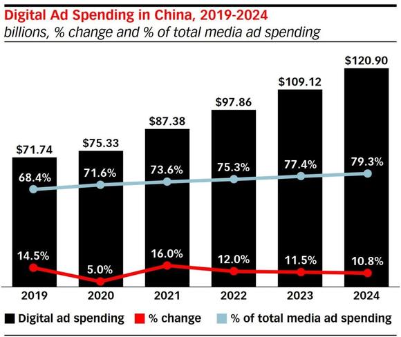 在eMarketer今年发布的报告中,国内数字媒介的广告投入已经达到753.3亿美元,占据全球数字广告预算的22.6%,是全球广告中数字化比率最高的国家。