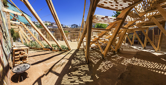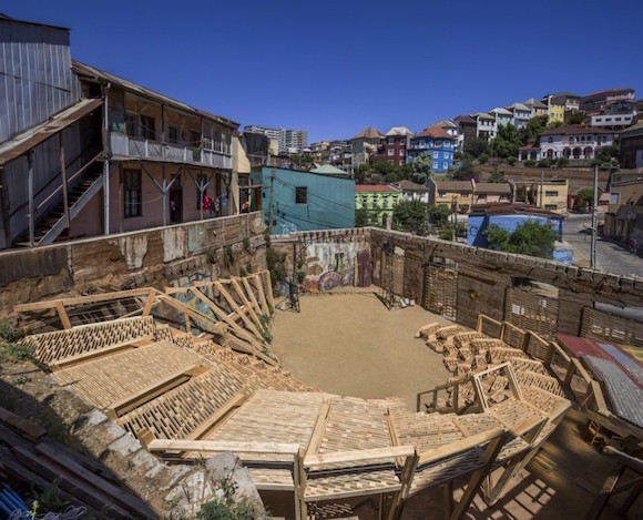 这座露天小剧场位于智利瓦尔帕莱索市,由当地组织 Sitio Eriazo 邀请奥斯陆建筑设计学院的建筑社团 The Scarcity and Creativity 负责设计和建造。Sitio Eriazo 一直致力于重新规划和设计瓦尔帕莱索市所有废弃的空地,而这次他们给予 The Scarcity and Creativity 的任务就是把瓦尔帕莱索市这个曾经人见人厌的垃圾场,变成一座可以举行包括音乐会、马戏表演、戏剧表演等公共文娱活动的小剧场。