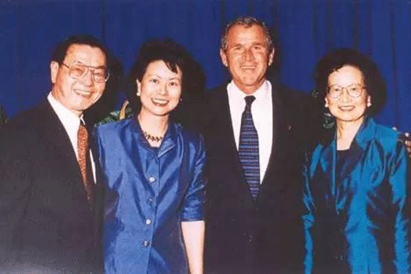 ▲图注:2000年,赵小兰和父母与小布什在一起