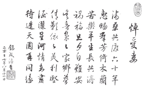 太太去世后,悲痛不已的赵锡成更亲笔写下一首诗悼念爱妻,以一句“待逢天国再同缘”感动无数读到此诗并了解其辉煌背后心酸历程的人。
