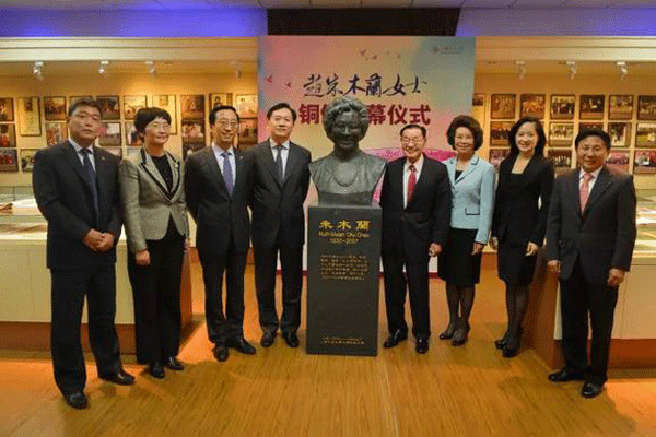 ▲图注:赵安吉与赵小兰陪同父亲出席上海交通大学赵朱木兰铜像揭幕典礼。上海交大为赵锡成家族在中国捐助的重点高校之一,学校以此铜像纪念赵朱木兰及其倡导的“博爱、乐观、坚毅、进取”的木兰精神。