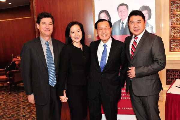 ▲北京大学校长林建华、党委副书记叶静漪、团委书记阮草、团委副书记张莉鑫、校友会副秘书长张向英、教育基金会副秘书长胡俊、外交学会美大部副主任雒春建以及华商名人堂出品人毕亚军等欢迎赵锡成家族一行。■