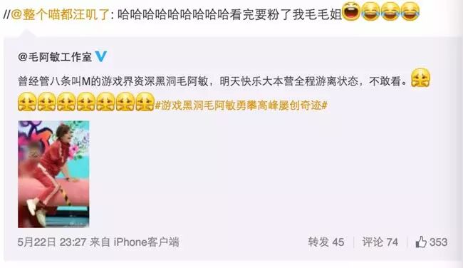 与此同时,主办方罗盘文化针对年轻一代受众进行的社会化营销也非常成功。微博上的毛阿敏已然是一个合格的“段子手”素材,非常配合 @毛阿敏工作室微博的各种调侃。
